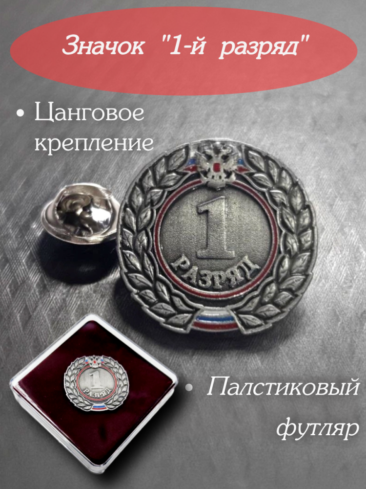 Значок зажимной "1й-разряд" в пластиковом футляре - описание товара